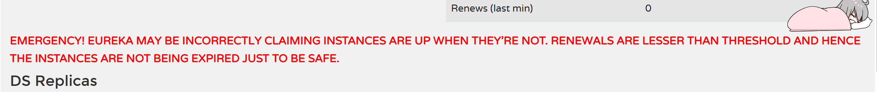 而当服务的总个数比较少的时候(比如1个2个),当出现个别服务超时时,续约成功的服务与总的服务数量的比值总会小于85%的阈值,这时所有的服务都会触发服务自保,不会被剔除。这时我们可以在注册中心发现这样一个警告: